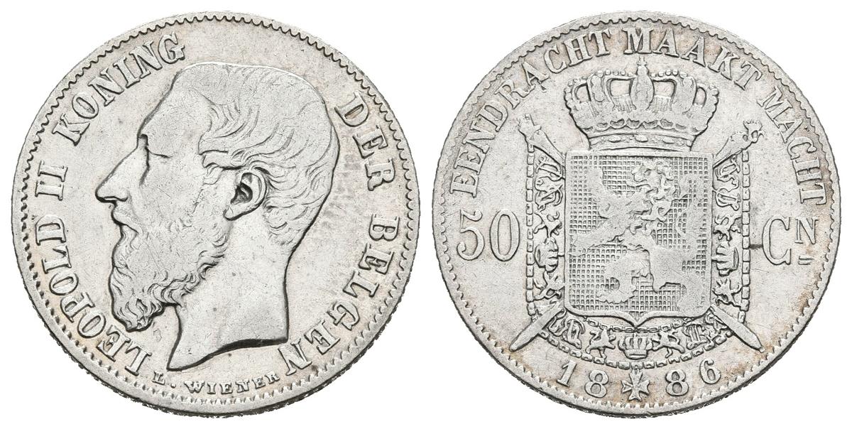 BÉLGICA. 50 Centimes (Ar. 2,42g/18mm). 1886. Leopoldo II. (Km#26). MBC.