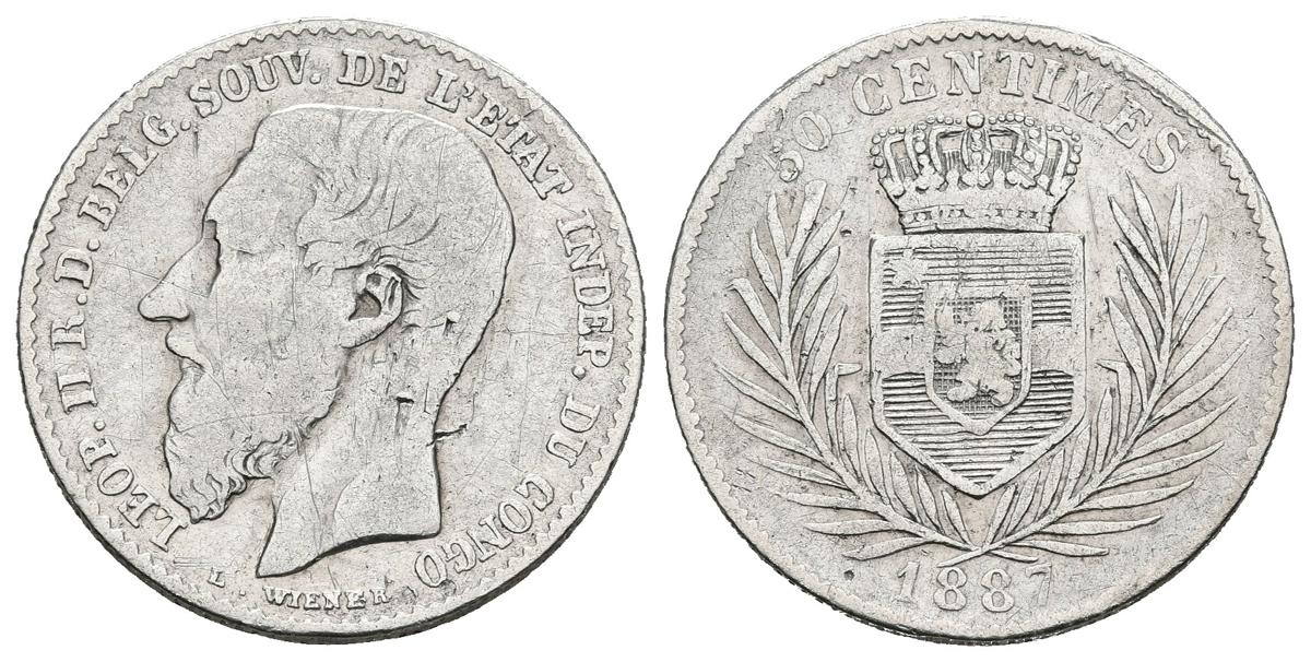 BELGICA. 50 Centimes (Ar. 2,43g/18mm). 1887. Leopoldo II. (Km#5). BC+.