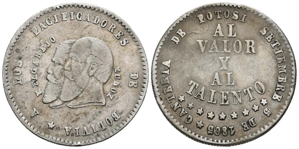 BOLIVIA. 1/2 Melgarejo. (Ar. 10,13g/31mm). 1865. Potosí. (Km#145.1). MBC.