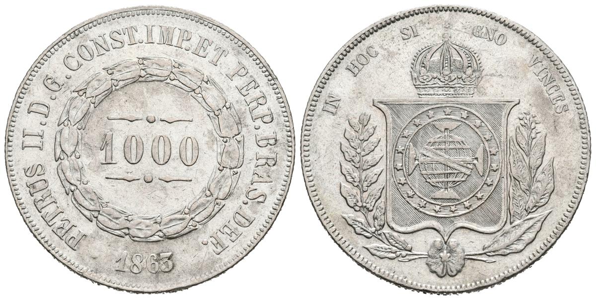 BRASIL. 100 Reis (Ar. 12,56g/30mm). 1963. Pedro II. (Km#465). MBC+. Marquitas.