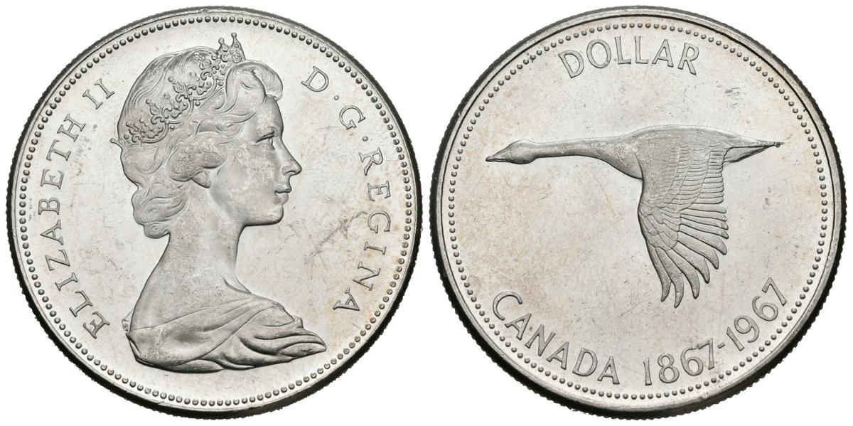 CANADÁ. 1 Dollar (Ar. 23.32g/36mm). 1967. (Km#70). EBC+. Rayitas.