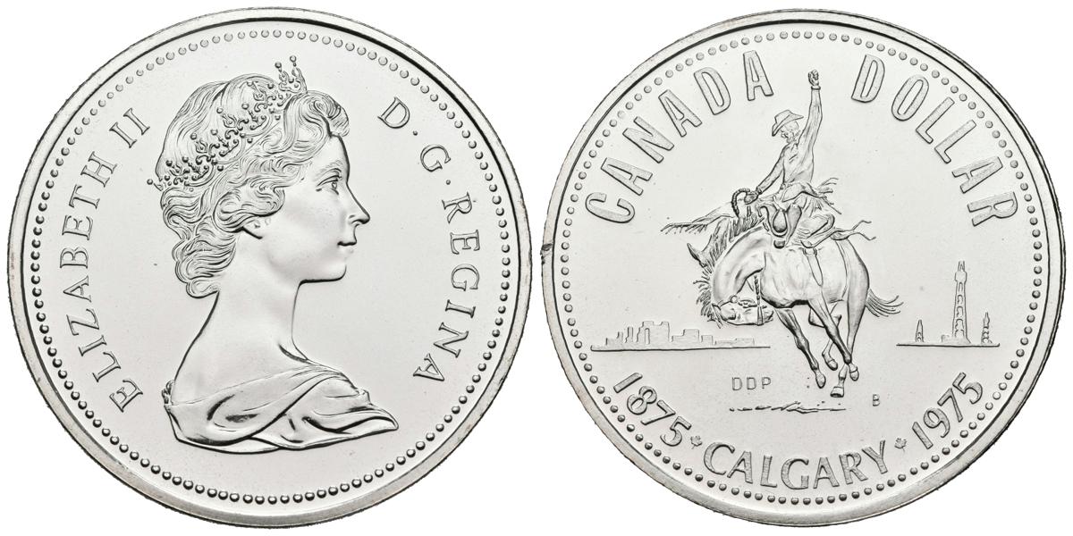 CANADÁ. 1 Dollar (Ar. 23,32g/36mm). 1975. 100 aniversario de Calgary. (Km#97). Proof.