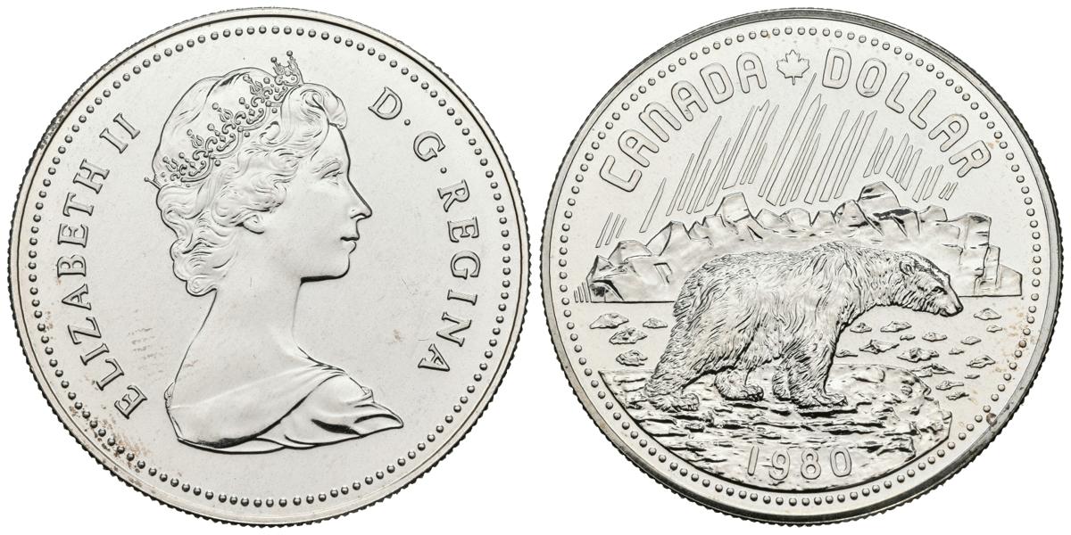 CANADÁ. 1 Dollar. (Ar. 23,34g/36mm). 1980. 100 aniversario Territorios del Ártico. ( Km#128). SC.