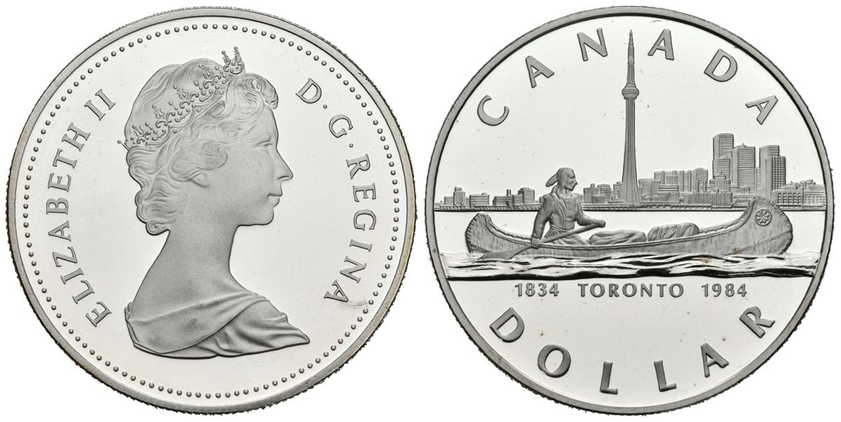 CANADÁ. 1 Dollar (Ar. 23,61g/36mm). 1984. 150 Aniversario de Toronto. (Km#140). Proof.