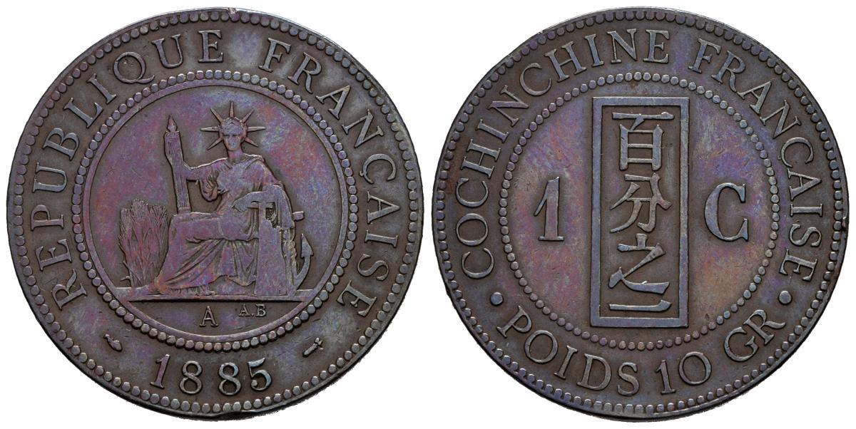 COCHINCHINA FRANCESA. 1 Cent. (Ae. 9,78g/31mm). 1885. París A. (Km#3). MBC. Preciosa pátina.