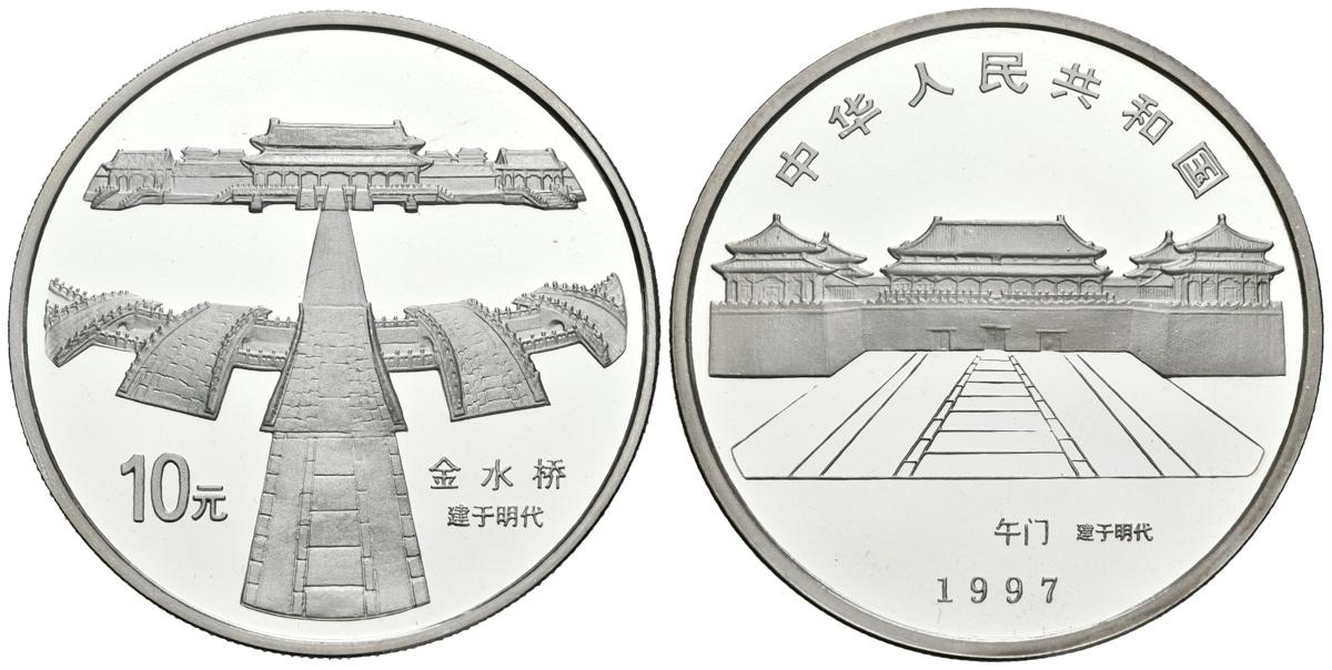 CHINA. 10 Yuan (Ar. 31,24g/40mm). 1997. Ciudad Prohibida. Ciudadela y Río. (Km#1094). PROOF.