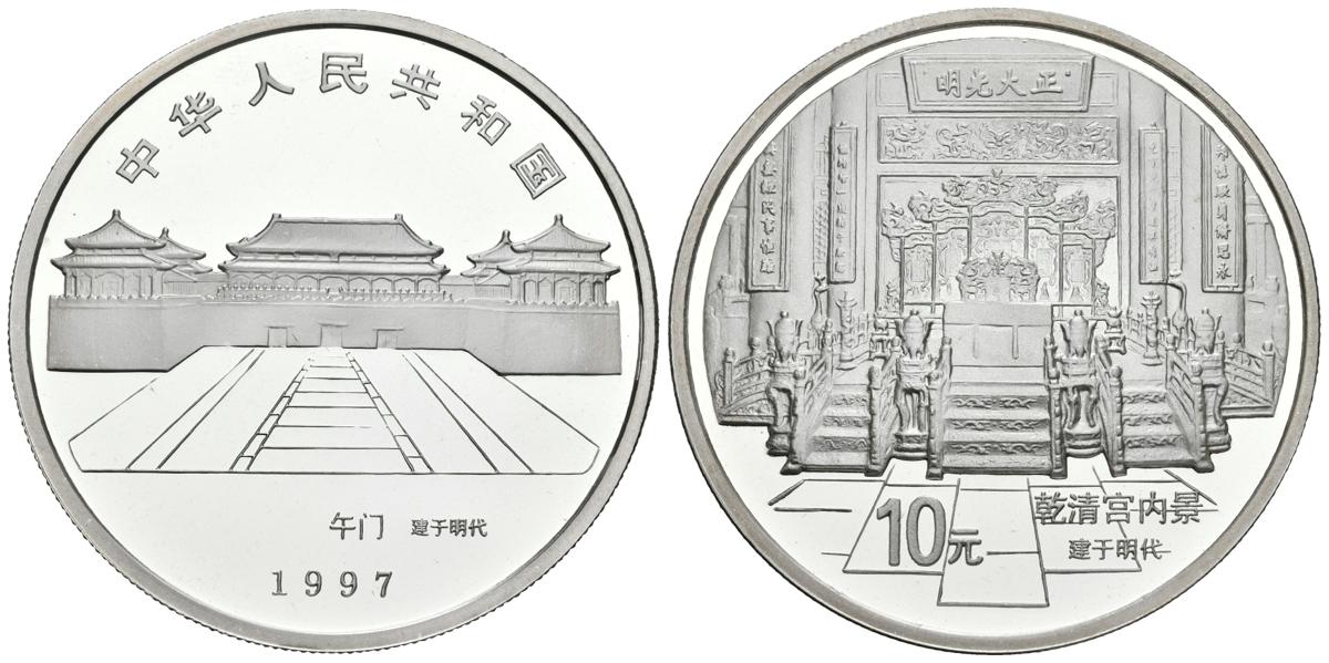 CHINA. 10 Yuan (Ar. 31,50g/40mm). 1997. Ciudad Prohibida. Gran Trono de Palacio. (Km#1093). PROOF.