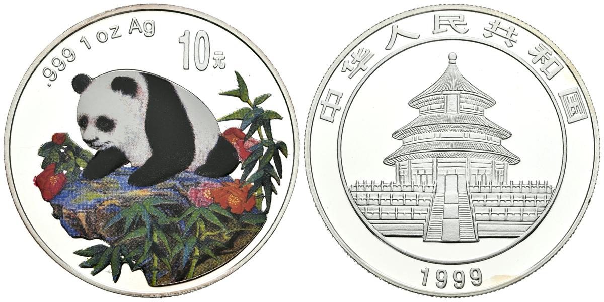 CHINA. 10 Yuan (Ar. 31,33g/40mm). 1999. Panda coloreado. (Km#1217). PROOF.