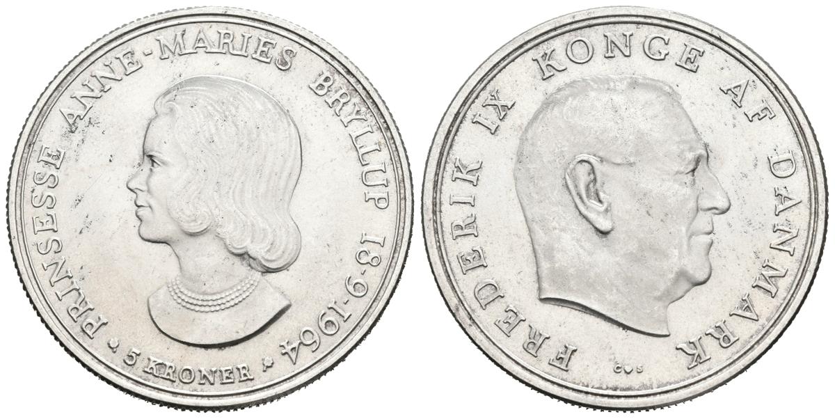 DINAMARCA. 5 Coronas (Ar. 16,93g/33mm). 1964. Boda de la Princesa Ana Maria. (Km#854). EBC-.