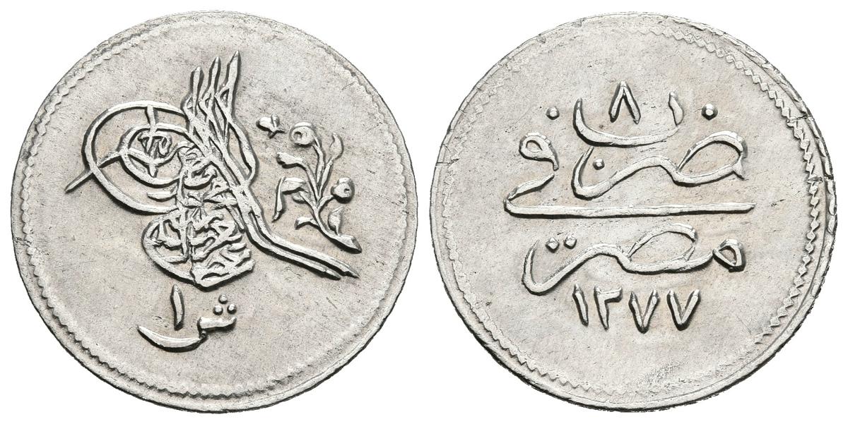 EGIPTO. 1 Qirsh (Ar. 1,17g/18mm). 1861 (1277AH). Abdülaziz I. (Km#250). EBC.
