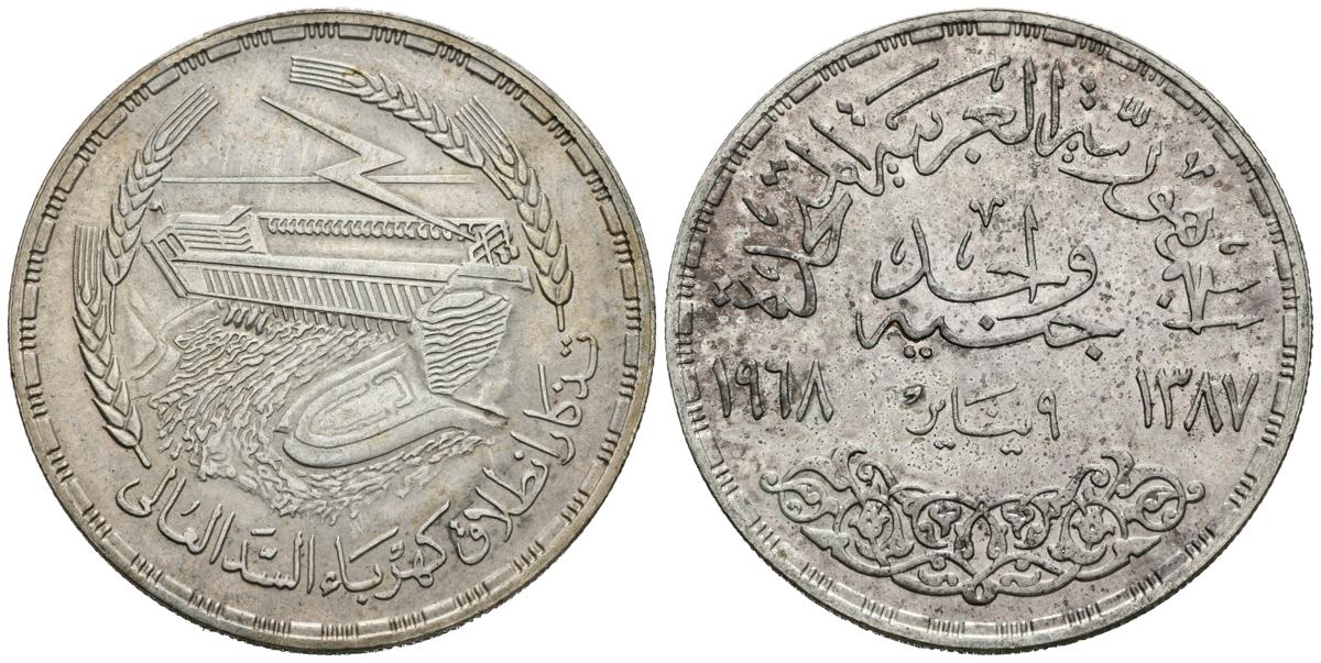 EGIPTO. 1 Pound. (Ar. 24,95g/40mm). 1968. Estación de Energía de Aswan Dam. (Km#415). EBC-.