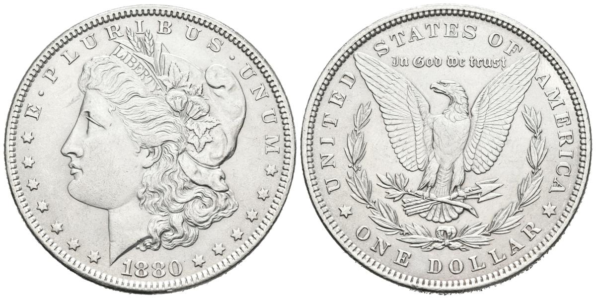 ESTADOS UNIDOS. 1 Dollar (Ar. 26,71g/38mm). 1880. Philadelphia. (Km#110). EBC-. Leves marquitas. Restos de brillo original.