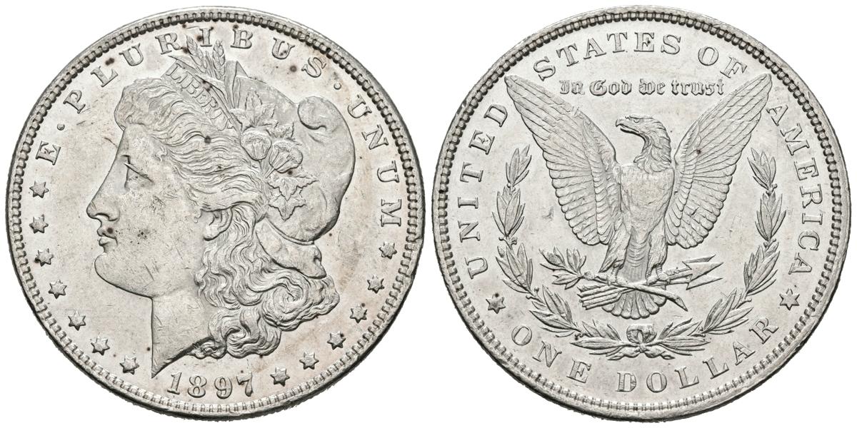 ESTADOS UNIDOS. 1 Dollar. (Ar. 26,75g/38mm). 1897. Filadelfia. (Km#110). MBC+. Limpiada.