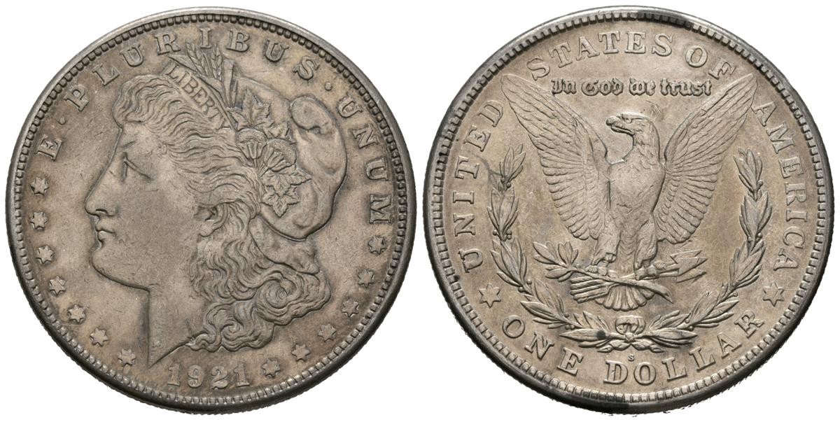ESTADOS UNIDOS. 1 Dollar. (Ar. 26,67g/38mm). 1921. San Francisco S. (Km#110). MBC/MBC+. Limpiada.