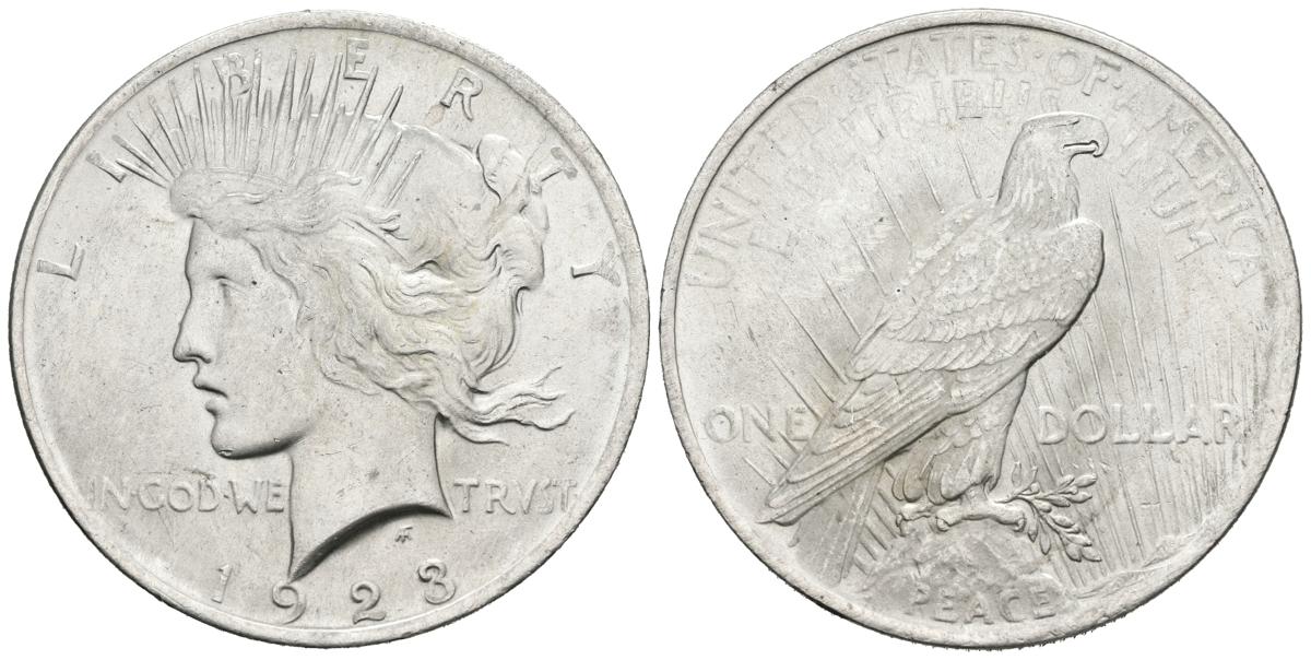 ESTADOS UNIDOS. 1 Dollar. (Ar. 26,70g/38mm). 1923. Philadelphia. (Km#150). EBC+. Leves marquitas. Brillo original.