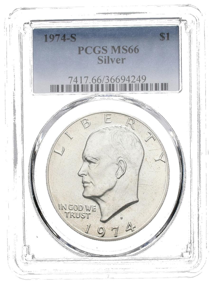 ESTADOS UNIDOS. 1 Dollar (Ar. 24,59g/38mm)*. 1974. San Francisco. Eisenhower. (Km#203a). Encapsulado por PCGS. MS66. *Peso y medida teórico.