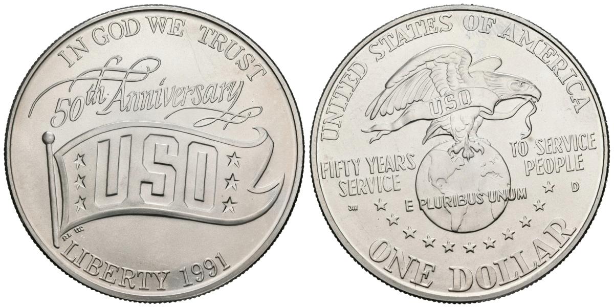 ESTADOS UNIDOS. 1 Dollar (Ar. 26,97g/38mm). 1991. Denver. 50 Años de Servicio al Servicio de las Personas. (Km#232). SC.