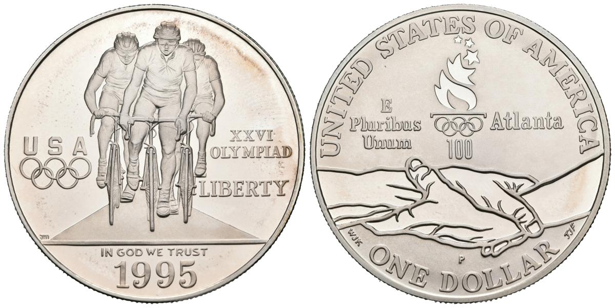 ESTADOS UNIDOS. 1 Dollar (Ar. 26,55g/38mm). 1995. Philadelphia. Olimpiadas de Atlanta 1996. Ciclismo. (Km#263). Proof.