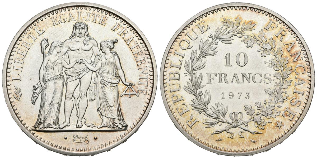 FRANCIA. 10 Francs (Ar. 25,10g/37mm). 1973. (Km#932). EBC+. Precioso tono. EBC+.