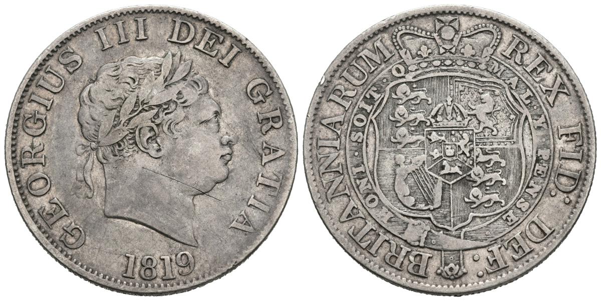 GRAN BRETAÑA. 1/2 Crown. (Ar. 13,86g/32mm). 1819. Georgius III. Londres. (Km#672). MBC-.