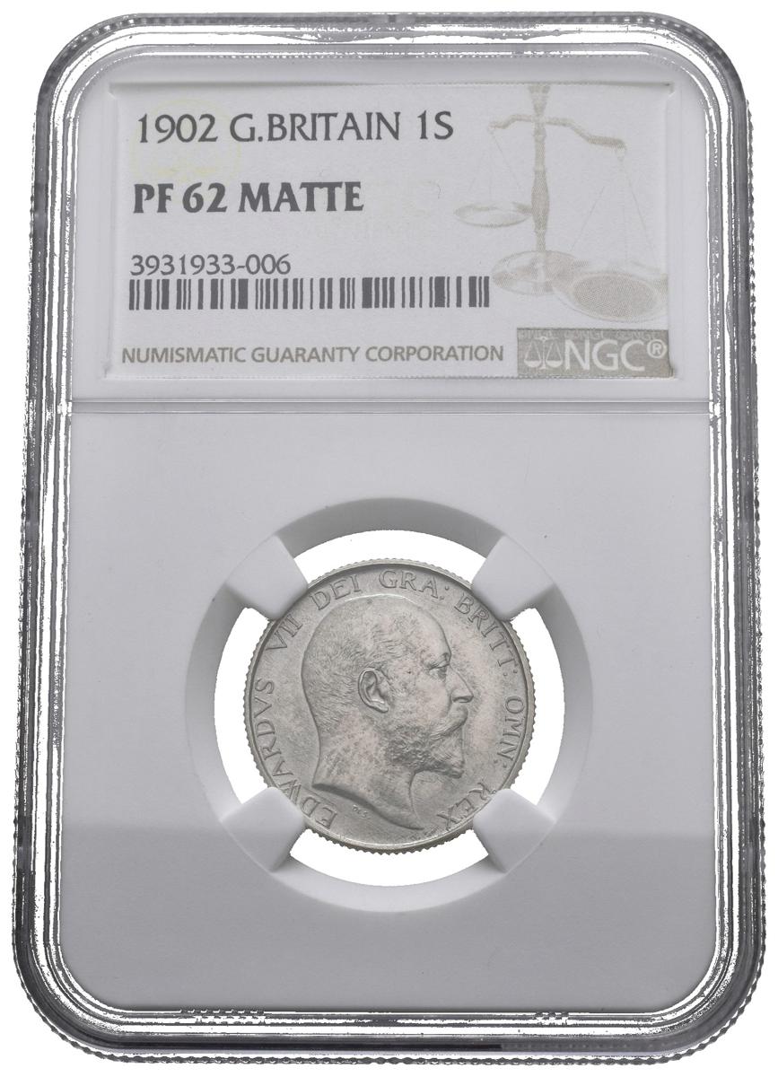 GRAN BRETAÑA. 1 Shilling (Ar.5,65g/24mm)*. 1902. Eduardo VII. Londres. (Km#800). Encapsulado por NGC. PF 62 Mate. *Peso y medida teórico.