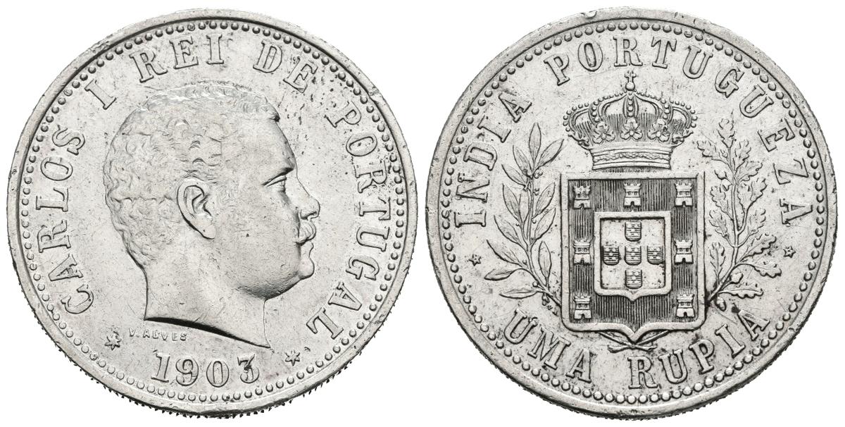 INDIA (Portuguesa). 1 Rupia (Ar. 11,63g/30mm). 1903. D. Carlos I. (Km#17). MBC.