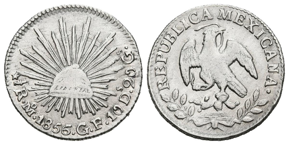 MÉXICO. 1/2 Real (Ar. 1,66g/16mm). 1856/5. Ciudad de México GF. (Km#370.9). MBC.
