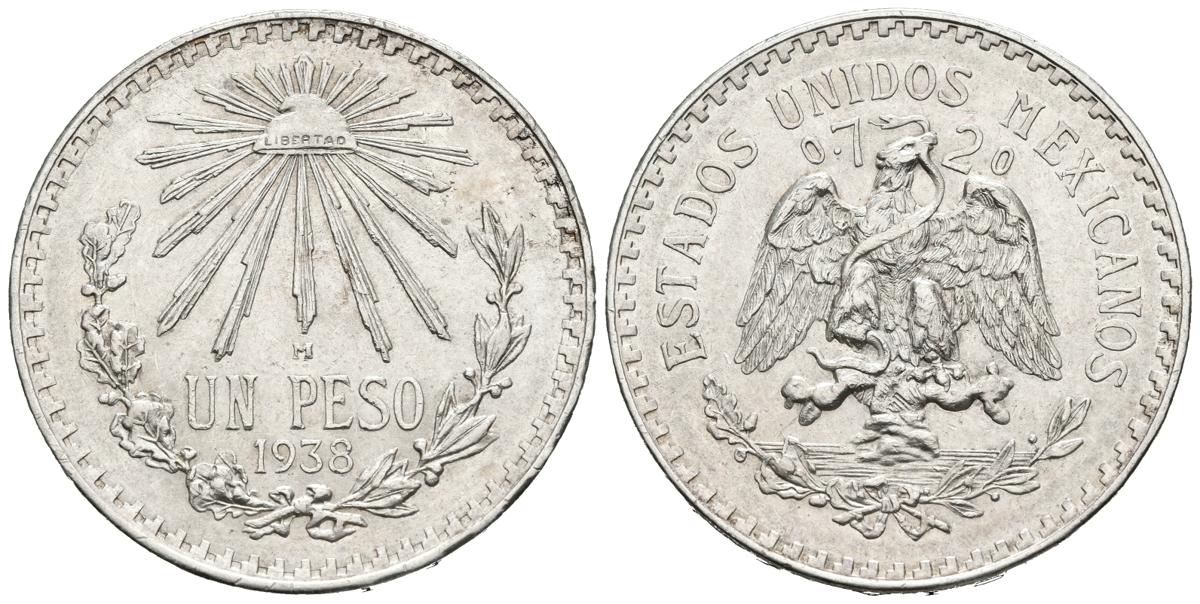 MÉXICO. 1 Peso (Ar. 16,66g/34mm). 1938. Independencia y Libertad en el canto. (Km#455). EBC. Leves marquitas.