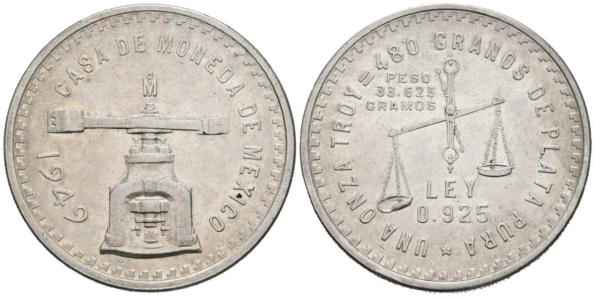 MEXICO. 1 Onza Troy (Ar. 33,54g/41mm). 1949. (Km#M49a). MBC+. Bonito tono.