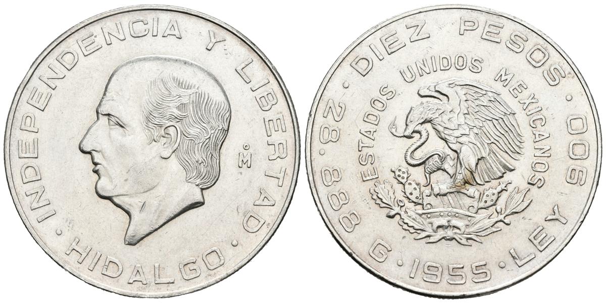 MÉXICO. 10 pesos. (Ar. 28,88g / 40mm). 1955. Hidalgo. (Km # 474). EBC-.