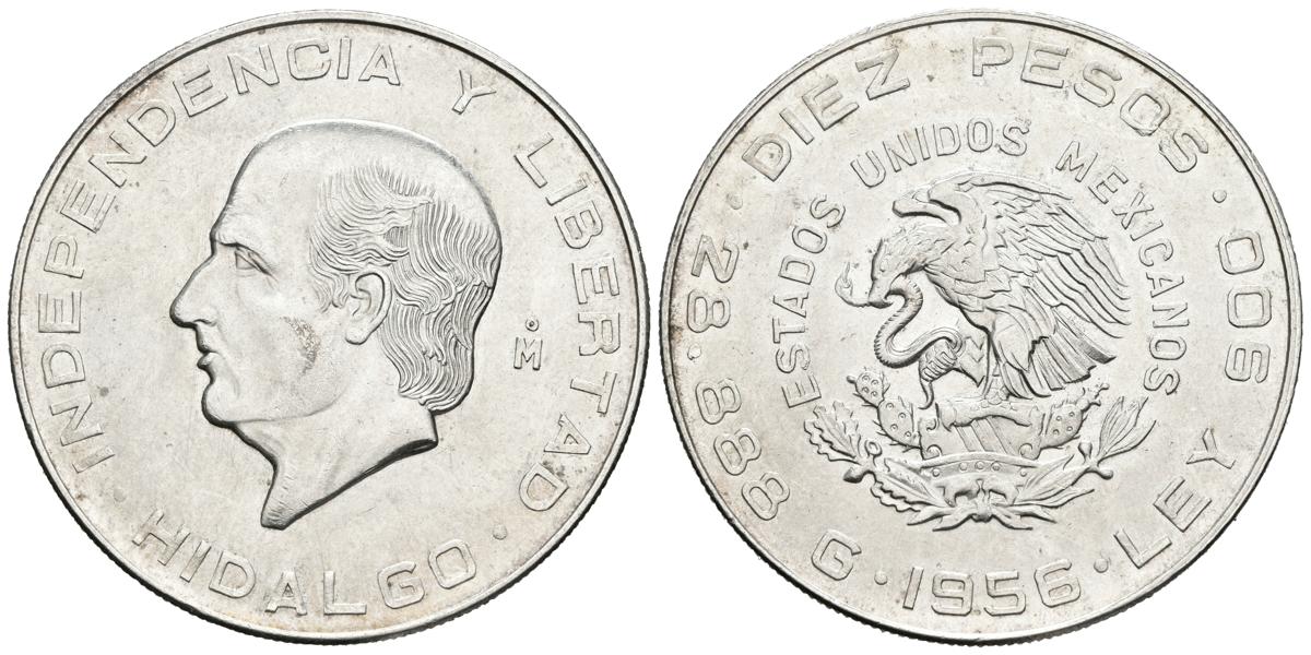 MÉXICO. 10 pesos. (Ar. 28,95g / 40mm). 1956. Hidalgo. (Km # 474). EBC.