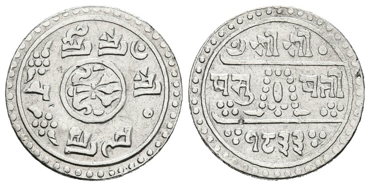 NEPAL. 1/4 Mohar (Ar. 1,28g/16mm). SE 1833 (1911). Prithvi Bir Bikram. (Km#644). MBC.