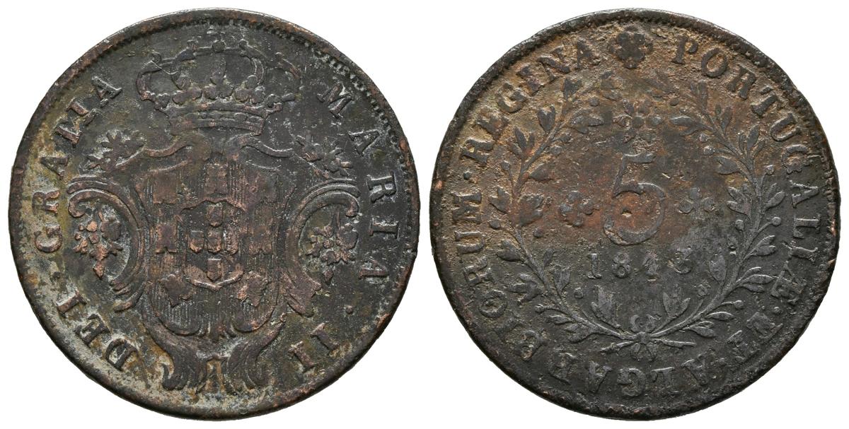 PORTUGAL (Azores). 5 Reis. (Ae. 3,63g/25mm). 1843. (Km#10). MBC-/MBC.
