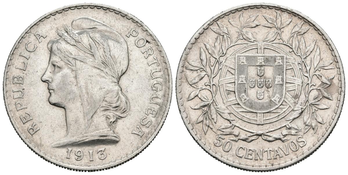 PORTUGAL. 50 Centavos (Ar. 12,48g/30mm). 1913. (Km#561). MBC+.