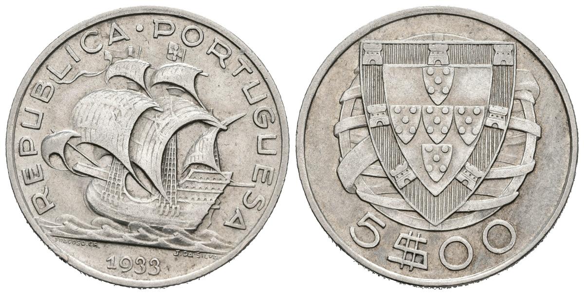 PORTUGAL. 5 Escudos (Ar. 6,87g/20mm). 1933. (Km#581). EBC-.