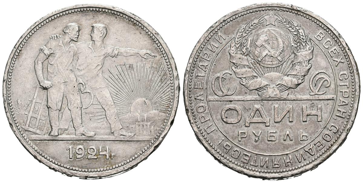 RUSIA. 1 Rublo (Ar. 19,96g/34mm). 1924. (Km#y90.1). MBC+. Golpecitos repartidos por el canto.