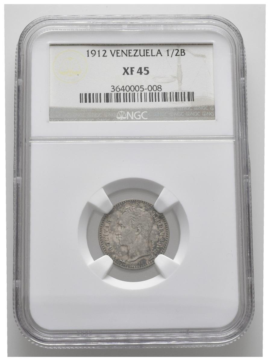 ESTADOS UNIDOS DE VENEZUELA. 1/2 Bolívar. (Ar. 2,50g/18mm). 1912. (Km#Y21). Encapsulado NGC XF-45.