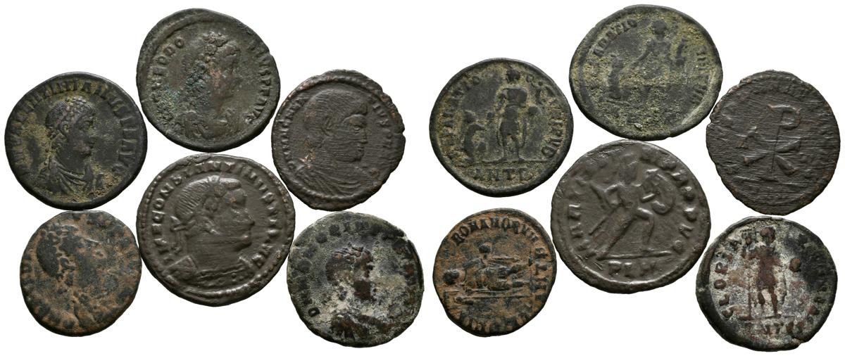 IMPERIO ROMANO. Lote compuesto por 6 bronces pequeños de diferentes emperadores del bajo imperio romano. A EXAMINAR.