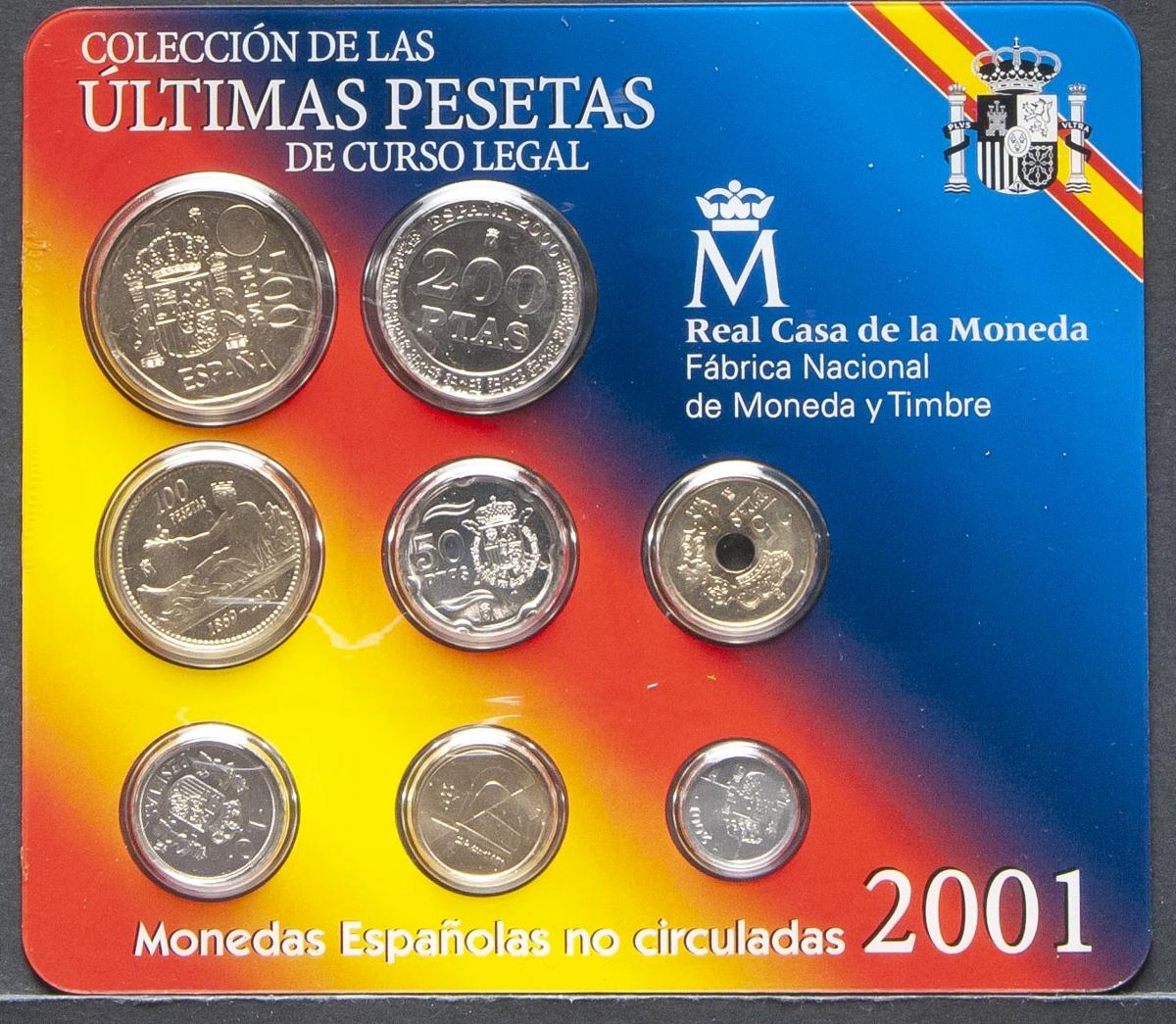 ESPAÑA. Cartera completa de la Colección de las Últimas Pesetas de Curso legal. Valores de 1. 5, 10, 25, 50, 100, 200 y 500 Pesetas. 2001. Madrid. FNMT. SC.