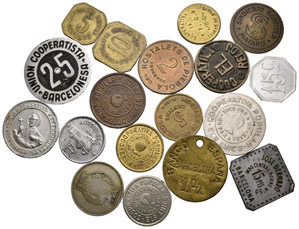 FICHAS. Conjunto de 18 fichas de la primera mitad del siglo XX, principalmente de los años 30. Diferentes módulos, valoress y estados de conservación. A EXAMINAR.
