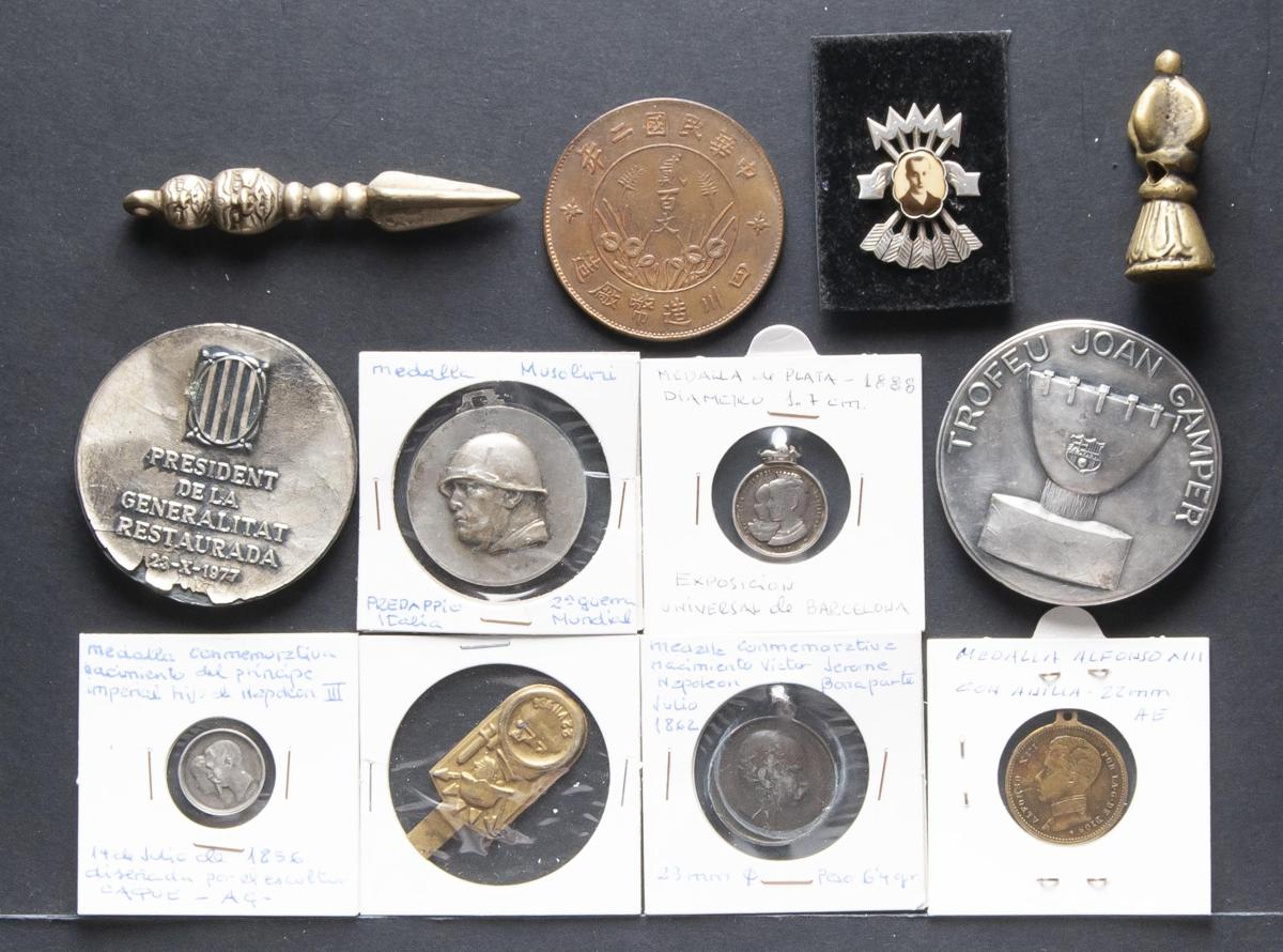 MEDALLAS. Bonito conjunto formado por 12 medallas, amuletos e insignias de diversos países, materiales y fechas. Diferentes estados de conservación. A EXAMINAR.