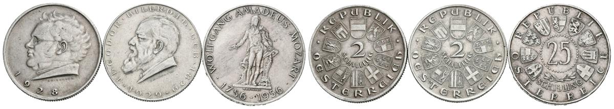 AUSTRIA. Conjunto formado por 3 monedas de plata de 2, y 25 Schilling de fechas 1928, 1929 y 1956. Diferentes estados de conservación. A EXAMINAR.