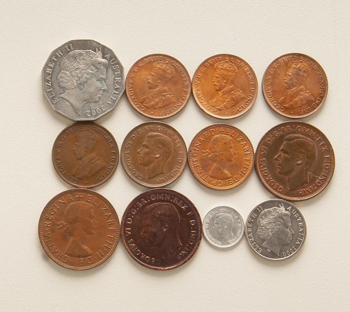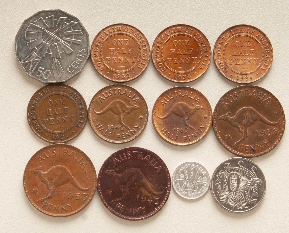 MONEDAS EXTRANJERAS. Bonito conjunto formado por 12 monedas australianas de diversos formatos, valores y materiales con fechas comprendidas entre 1921 y 2002. Ninguna pieza repetida. A EXAMINAR