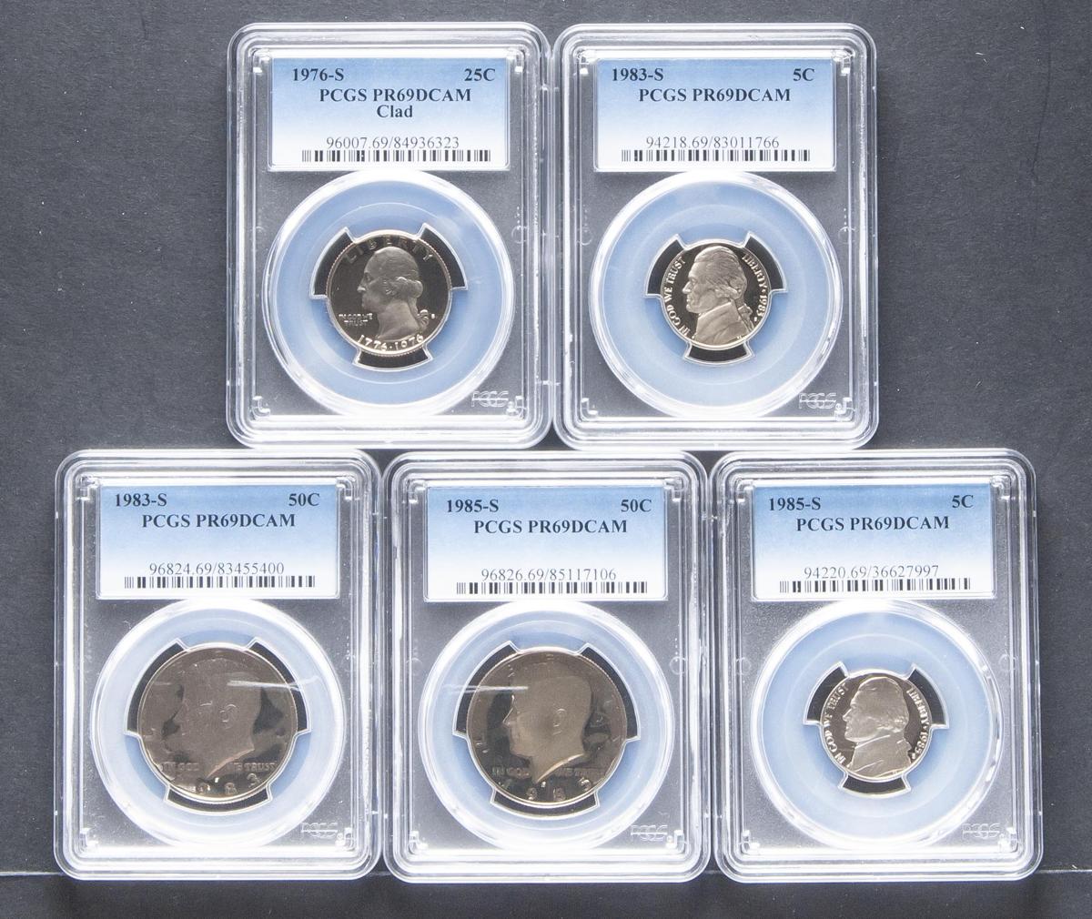 ESTADOS UNIDOS. Interesante conjunto formado por 11 monedas encapsuladas por PCGS de diferentes valores y materiales. Fechas comprendidas entre 1976 y 2006. Todas de la ceca de San Francisco y todas en altísimo nivel de conservación: PR69DCAM. A EXAMINAR
