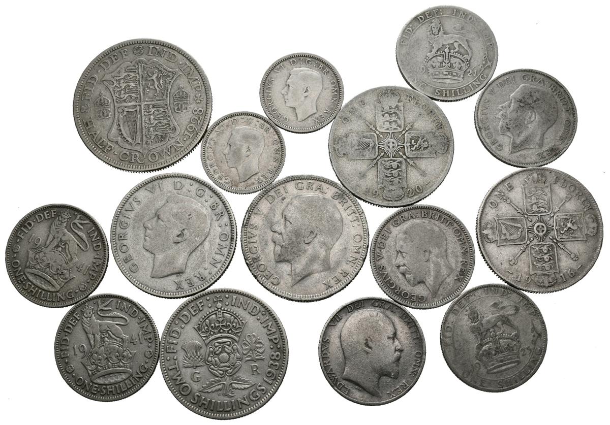 MONEDAS EXTRANJERAS. Conjunto compuesto por 15 monedas británicas de plata de diversos módulos y fechas. Diferentes estados de conservación. A EXAMINAR.