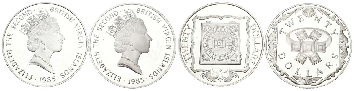 MONEDAS EXTRANJERAS. Bonito conjunto formado por 2 monedas de Islas Vírgenes de 20 Dólares de plata del año 1985. Alto grado de conservacion en ambas pieza. A EXAMINAR.
