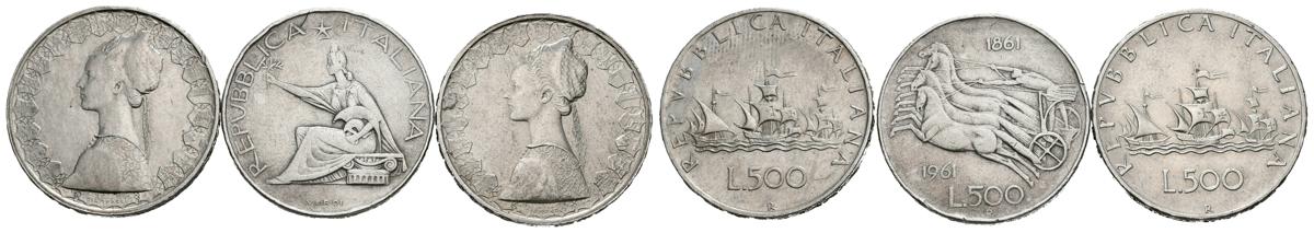 ITALIA. Interesante conjunto de 3 monedas de plata de 500 liras de los años 1959, 1961 y 1966. Diferentes estados de conservación. A EXAMINAR.