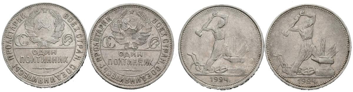 RUSIA. Bonito conjunto de 2 monedas de 1/2 Rublo en plata de 1924. Diferentes estados de conservación. A EXAMINAR.