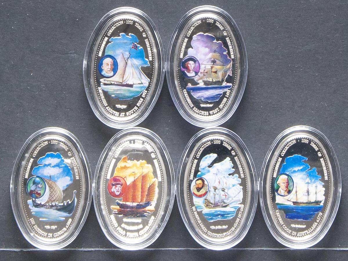 MONEDAS EXTRANJERAS. Bonito conjunto formado por 6 monedas de Zambia de 1000 Kwacha. Pieza de Cupro-niquel coloreadas. Serie 1000 años de Exploración. Año. 2000. SC. Presentadas en capuslas.
