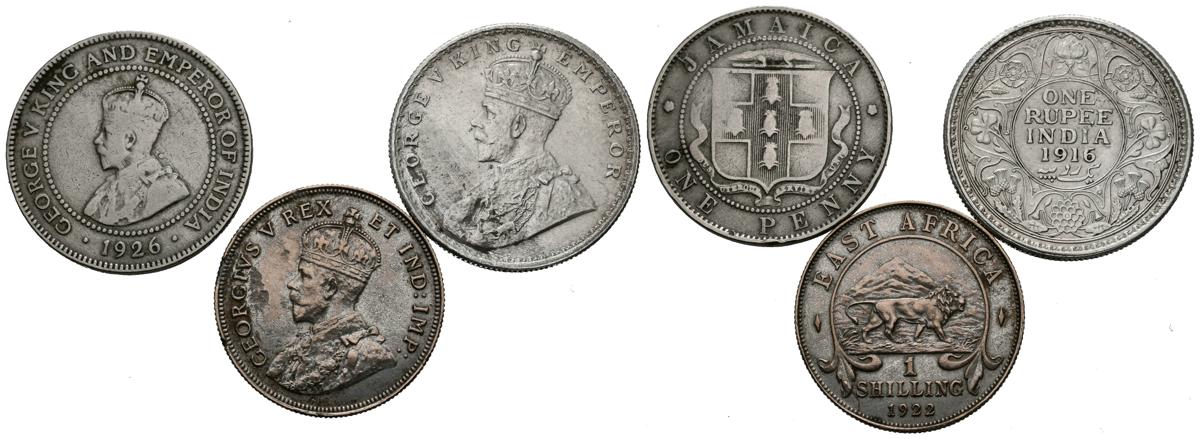 MONEDAS EXTRANJERAS. Bonito cojunto formado por 3 monedas de la commonwealth acuñadas bajo el reinado de Jorge V en India, Jamaica y África del Este. Diferentes valores y estados de conservación. A EXAMINAR